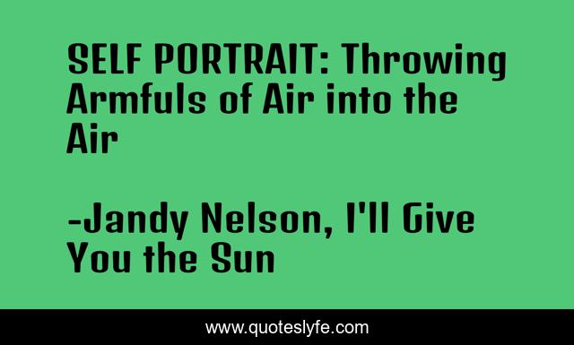 "Jandy Nelson, I'll Give You the Sun Quotes." Quoteslyfe.com, 2025. Sat. 06 Dec. 2025. <https://www.quoteslyfe.com/quote/SELF-PORTRAIT-Throwing-Armfuls-of-Air-into-65791>.