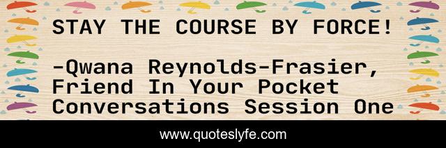"Qwana Reynolds-Frasier, Friend In Your Pocket Conversations Session One Quotes." Quoteslyfe.com, 2025. Sat. 06 Dec. 2025. <https://www.quoteslyfe.com/quote/STAY-THE-COURSE-BY-FORCE-88327>.