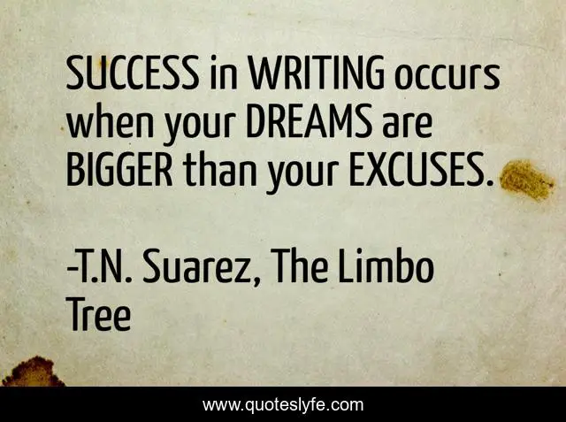 "T.N. Suarez, The Limbo Tree Quotes." Quoteslyfe.com, 2025. Fri. 05 Dec. 2025. <https://www.quoteslyfe.com/quote/SUCCESS-in-WRITING-occurs-when-your-DREAMS-23695>.