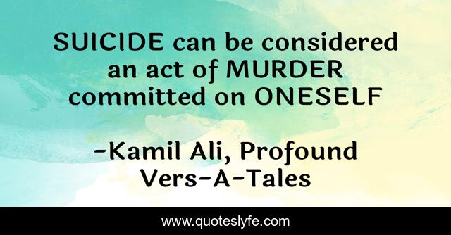 This page presents the quote "SUICIDE can be considered an act of MURDER committed on ONESELF". Author of this quote is Kamil Ali, Profound Vers-A-Tales. This quote is about kamiltheauthor, vers, suicide, ali, profound, kamil, murder,.