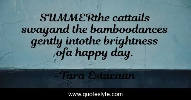 "Tara Estacaan Quotes." Quoteslyfe.com, 2025. Fri. 05 Dec. 2025. <https://www.quoteslyfe.com/quote/SUMMERthe-cattails-swayand-the-bamboodances-gently-intothe-183177>.