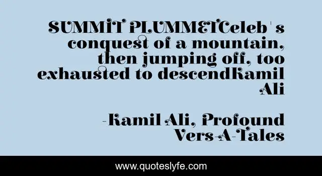 "Kamil Ali, Profound Vers-A-Tales Quotes." Quoteslyfe.com, 2025. Fri. 05 Dec. 2025. <https://www.quoteslyfe.com/quote/SUMMIT-PLUMMETCeleb-s-conquest-of-a-mountain-256924>.