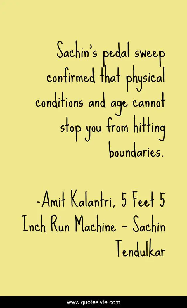 "Amit Kalantri, 5 Feet 5 Inch Run Machine – Sachin Tendulkar Quotes." Quoteslyfe.com, 2025. Mon. 08 Dec. 2025. <https://www.quoteslyfe.com/quote/Sachin-s-pedal-sweep-confirmed-that-physical-197723>.