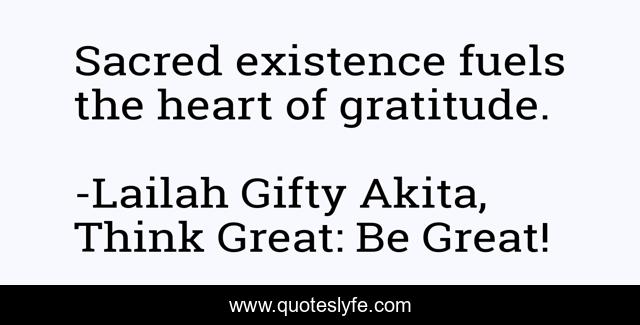 "Lailah Gifty Akita, Think Great: Be Great! Quotes." Quoteslyfe.com, 2025. Mon. 08 Dec. 2025. <https://www.quoteslyfe.com/quote/Sacred-existence-fuels-the-heart-of-gratitude-140407>.