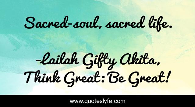 "Lailah Gifty Akita, Think Great: Be Great! Quotes." Quoteslyfe.com, 2025. Sun. 07 Dec. 2025. <https://www.quoteslyfe.com/quote/Sacred-soul-sacred-life-142755>.