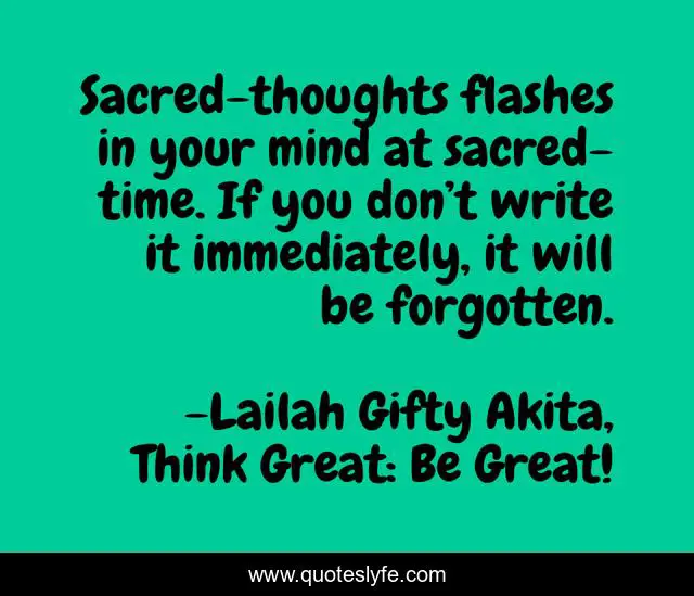 "Lailah Gifty Akita, Think Great: Be Great! Quotes." Quoteslyfe.com, 2025. Fri. 05 Dec. 2025. <https://www.quoteslyfe.com/quote/Sacred-thoughts-flashes-in-your-mind-at-34528>.