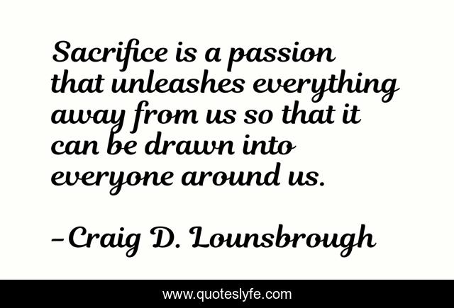 "Craig D. Lounsbrough Quotes." Quoteslyfe.com, 2025. Sun. 07 Dec. 2025. <https://www.quoteslyfe.com/quote/Sacrifice-is-a-passion-that-unleashes-everything-92392>.