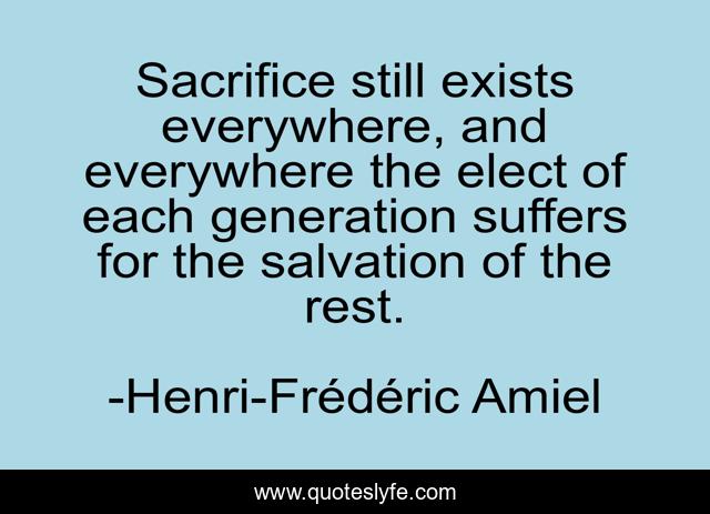 This page presents the quote "Sacrifice still exists everywhere, and everywhere the elect of each generation suffers for the salvation of the rest.". Author of this quote is Henri-Frédéric Amiel. .