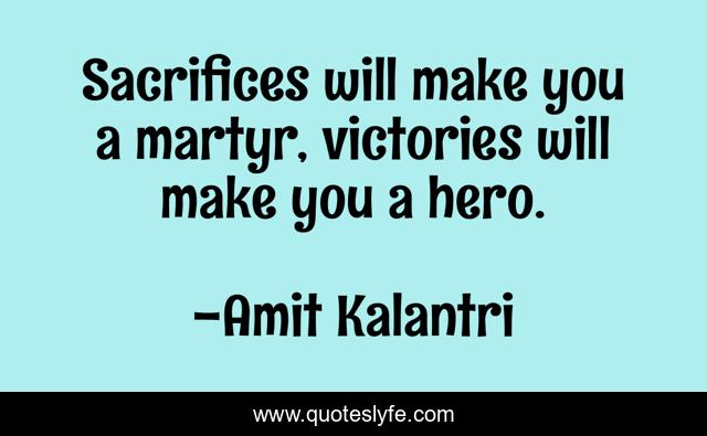 "Amit Kalantri Quotes." Quoteslyfe.com, 2025. Sat. 06 Dec. 2025. <https://www.quoteslyfe.com/quote/Sacrifices-will-make-you-a-martyr-victories-198488>.