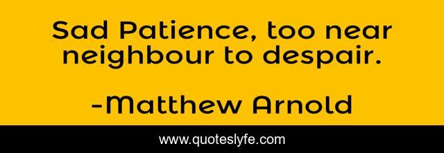This page presents the quote "Sad Patience, too near neighbour to despair.". Author of this quote is Matthew Arnold. This quote is about neighbour, despair, sad,.