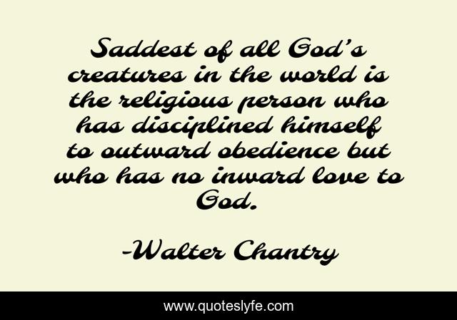 This page presents the quote "Saddest of all God’s creatures in the world is the religious person who has disciplined himself to outward obedience but who has no inward love to God.". Author of this quote is Walter Chantry. This quote is about enthusiasm, christian, inspirational,.