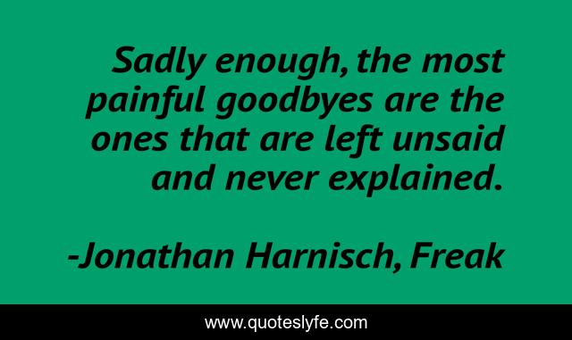 "Jonathan Harnisch, Freak Quotes." Quoteslyfe.com, 2025. Mon. 08 Dec. 2025. <https://www.quoteslyfe.com/quote/Sadly-enough-the-most-painful-goodbyes-are-116098>.