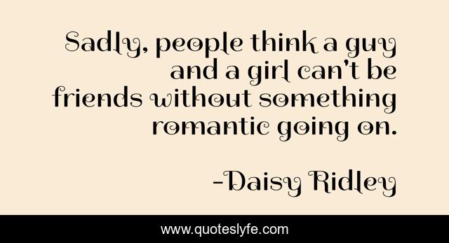This page presents the quote "Sadly, people think a guy and a girl can't be friends without something romantic going on.". Author of this quote is Daisy Ridley. This quote is about girl, friends, people,.