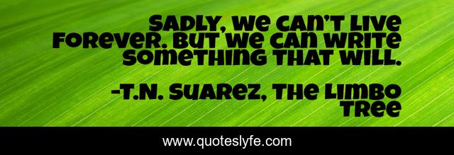 This page presents the quote "Sadly, we can’t live forever. But we can write something that will.". Author of this quote is T.N. Suarez, The Limbo Tree. This quote is about confidence, writers-book, positive, motivational, famous, writers, optimistic, inspirational, enthusiasm,.