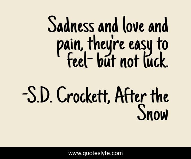 This page presents the quote "Sadness and love and pain, they're easy to feel- but not luck.". Author of this quote is S.D. Crockett, After the Snow. This quote is about sd-crockett, after-the-snow, luck,.