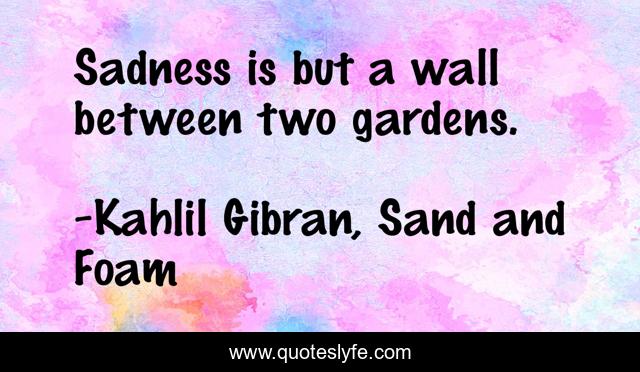 "Kahlil Gibran, Sand and Foam Quotes." Quoteslyfe.com, 2025. Fri. 05 Dec. 2025. <https://www.quoteslyfe.com/quote/Sadness-is-but-a-wall-between-two-19194>.