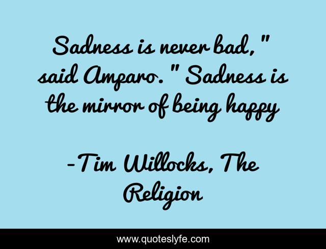 This page presents the quote "Sadness is never bad, " said Amparo. "Sadness is the mirror of being happy". Author of this quote is Tim Willocks, The Religion. This quote is about sadness, happiness,.
