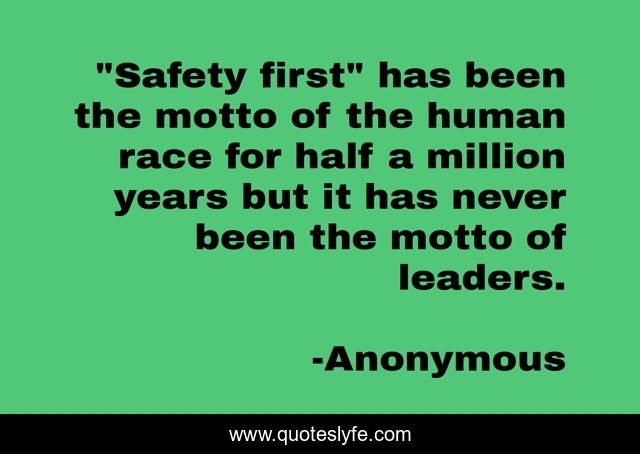 This page presents the quote ""Safety first" has been the motto of the human race for half a million years but it has never been the motto of leaders.". Author of this quote is Anonymous. .