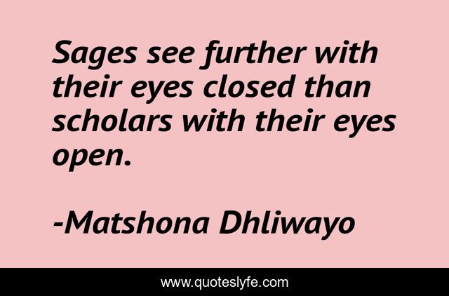 "Matshona Dhliwayo Quotes." Quoteslyfe.com, 2025. Fri. 05 Dec. 2025. <https://www.quoteslyfe.com/quote/Sages-see-further-with-their-eyes-closed-98005>.