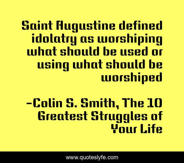 "Colin S. Smith, The 10 Greatest Struggles of Your Life Quotes." Quoteslyfe.com, 2025. Fri. 05 Dec. 2025. <https://www.quoteslyfe.com/quote/Saint-Augustine-defined-idolatry-as-worshiping-what-193974>.
