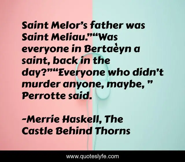 "Merrie Haskell, The Castle Behind Thorns Quotes." Quoteslyfe.com, 2025. Tue. 09 Dec. 2025. <https://www.quoteslyfe.com/quote/Saint-Melor-s-father-was-Saint-Meliau-41575>.