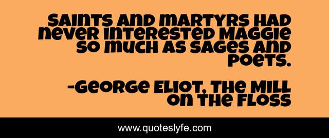 "George Eliot, The Mill on the Floss Quotes." Quoteslyfe.com, 2025. Sat. 06 Dec. 2025. <https://www.quoteslyfe.com/quote/Saints-and-martyrs-had-never-interested-Maggie-241846>.