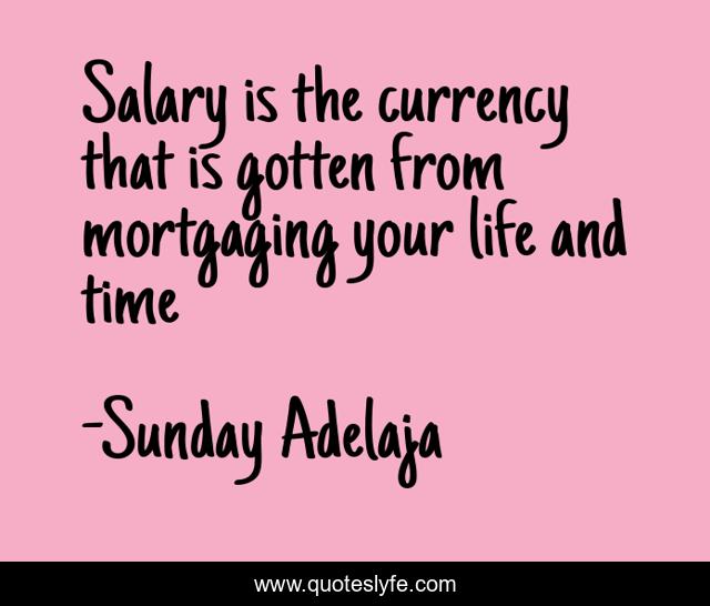 This page presents the quote "Salary is the currency that is gotten from mortgaging your life and time". Author of this quote is Sunday Adelaja. This quote is about love, pragmatic, people, money, principles, selflessness, employment, worship, impact,.