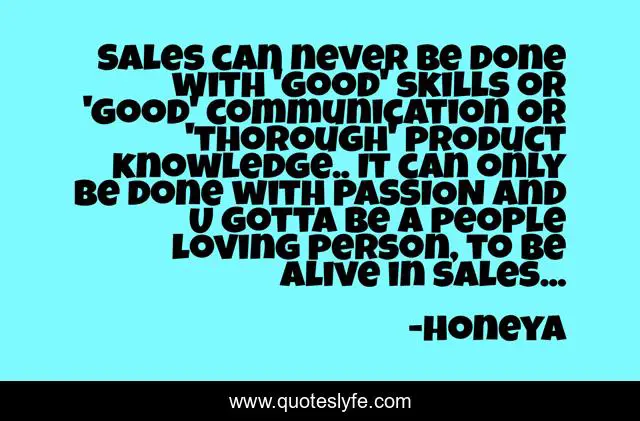 "honeya Quotes." Quoteslyfe.com, 2025. Sat. 06 Dec. 2025. <https://www.quoteslyfe.com/quote/Sales-can-never-be-done-with-good-93101>.