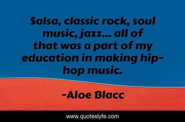 This page presents the quote "Salsa, classic rock, soul music, jazz... all of that was a part of my education in making hip-hop music.". Author of this quote is Aloe Blacc. This quote is about jazz, music, soul,.
