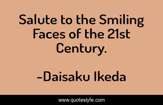 This page presents the quote "Salute to the Smiling Faces of the 21st Century.". Author of this quote is Daisaku Ikeda. This quote is about buddhism, humanism,.