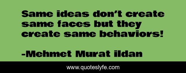 This page presents the quote "Same ideas don’t create same faces but they create same behaviors!". Author of this quote is Mehmet Murat ildan. This quote is about same-ideas, murat-ildan, ideas, behaviour, behaviours, turkish-thinkers, turkish,.