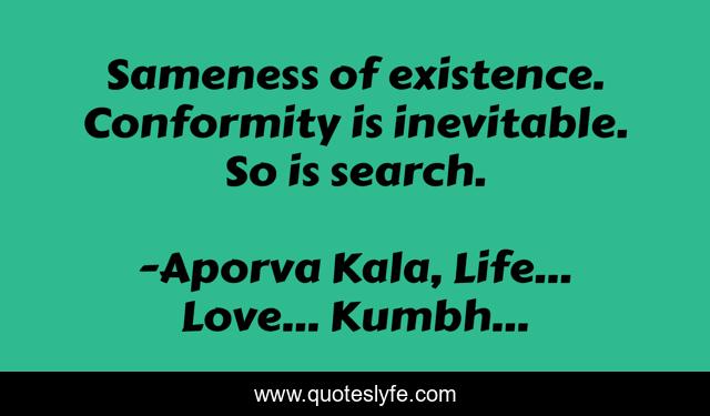 This page presents the quote "Sameness of existence. Conformity is inevitable. So is search.". Author of this quote is Aporva Kala, Life... Love... Kumbh.... This quote is about existence, spirituality,.