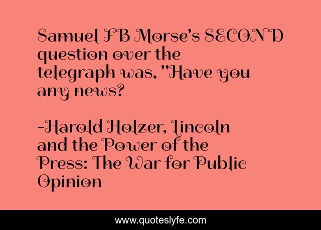 "Harold Holzer, Lincoln and the Power of the Press: The War for Public Opinion Quotes." Quoteslyfe.com, 2025. Mon. 08 Dec. 2025. <https://www.quoteslyfe.com/quote/Samuel-FB-Morse-s-SECOND-question-over-218229>.