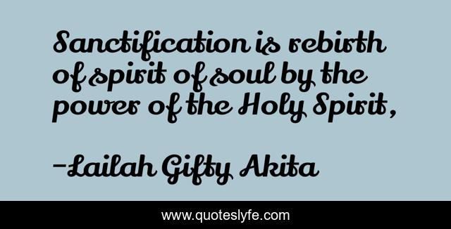 "Lailah Gifty Akita Quotes." Quoteslyfe.com, 2025. Sun. 07 Dec. 2025. <https://www.quoteslyfe.com/quote/Sanctification-is-rebirth-of-spirit-of-soul-36386>.