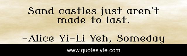 This page presents the quote "Sand castles just aren't made to last.". Author of this quote is Alice Yi-Li Yeh, Someday. .