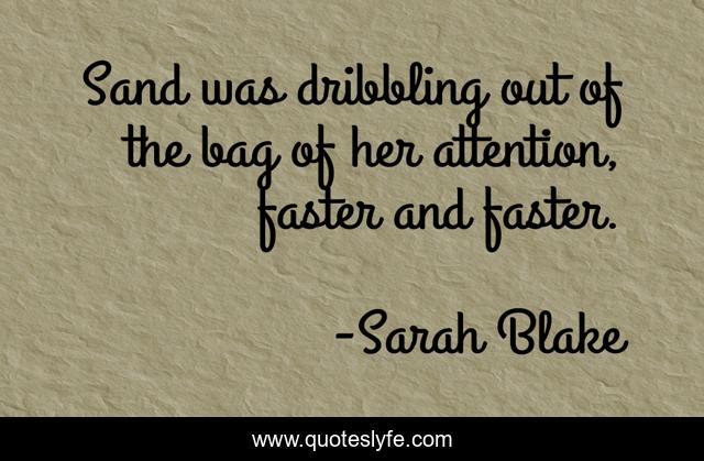 This page presents the quote "Sand was dribbling out of the bag of her attention, faster and faster.". Author of this quote is Sarah Blake. This quote is about metaphor, distraction,.