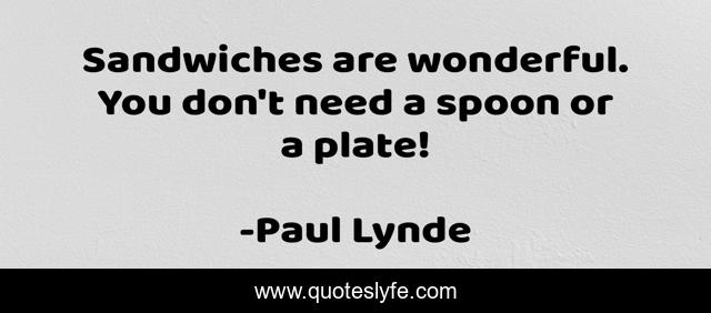 This page presents the quote "Sandwiches are wonderful. You don't need a spoon or a plate!". Author of this quote is Paul Lynde. This quote is about spoon, wonderful,.