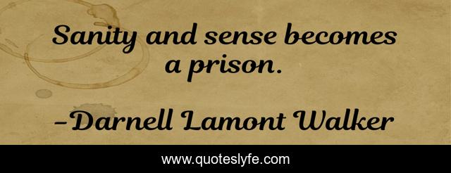This page presents the quote "Sanity and sense becomes a prison.". Author of this quote is Darnell Lamont Walker. This quote is about freedom, sense, insanity, sanity, prison, common-sense,.