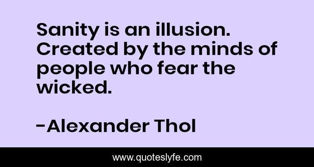 This page presents the quote "Sanity is an illusion. Created by the minds of people who fear the wicked.". Author of this quote is Alexander Thol. This quote is about sanity, illusion, wicked,.