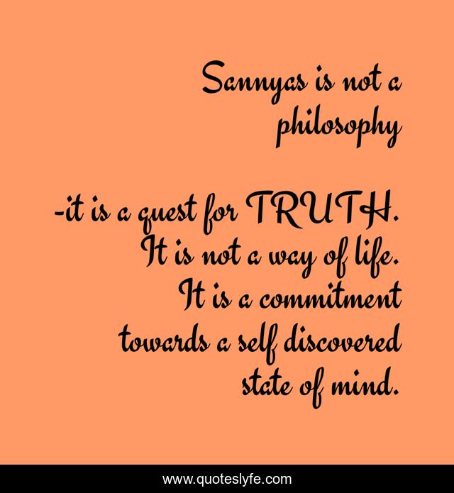 "it is a quest for TRUTH. It is not a way of life. It is a commitment towards a self discovered state of mind. Quotes." Quoteslyfe.com, 2025. Fri. 05 Dec. 2025. <https://www.quoteslyfe.com/quote/Sannyas-is-not-a-philosophy-248259>.
