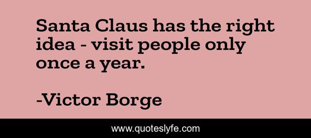 This page presents the quote "Santa Claus has the right idea - visit people only once a year.". Author of this quote is Victor Borge. This quote is about right, idea, people,.