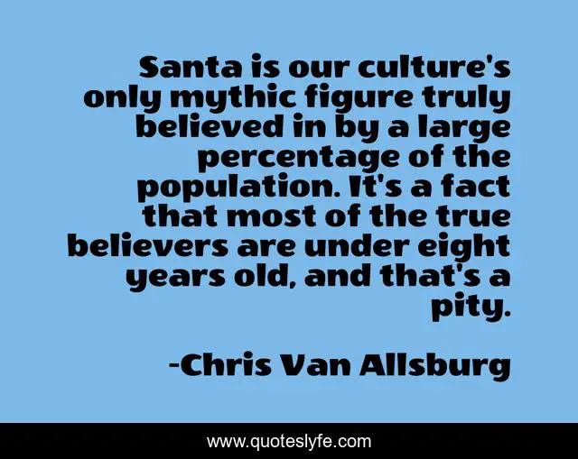 "Chris Van Allsburg Quotes." Quoteslyfe.com, 2025. Mon. 08 Dec. 2025. <https://www.quoteslyfe.com/quote/Santa-is-our-culture-s-only-mythic-290494>.