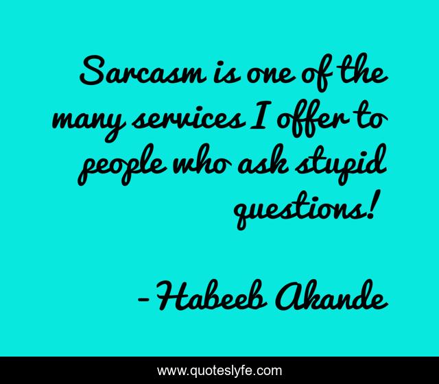 This page presents the quote "Sarcasm is one of the many services I offer to people who ask stupid questions!". Author of this quote is Habeeb Akande. This quote is about sarcasm, question, stupid-question,.