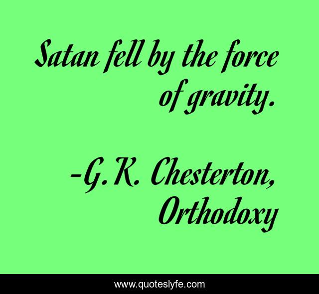 "G.K. Chesterton, Orthodoxy Quotes." Quoteslyfe.com, 2025. Sun. 07 Dec. 2025. <https://www.quoteslyfe.com/quote/Satan-fell-by-the-force-of-gravity-178039>.