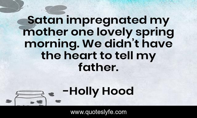 "Holly Hood Quotes." Quoteslyfe.com, 2025. Fri. 05 Dec. 2025. <https://www.quoteslyfe.com/quote/Satan-impregnated-my-mother-one-lovely-spring-40863>.