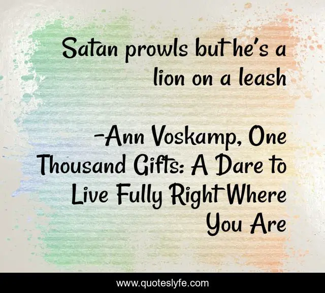 "Ann Voskamp, One Thousand Gifts: A Dare to Live Fully Right Where You Are Quotes." Quoteslyfe.com, 2025. Sun. 07 Dec. 2025. <https://www.quoteslyfe.com/quote/Satan-prowls-but-he-s-a-lion-257334>.