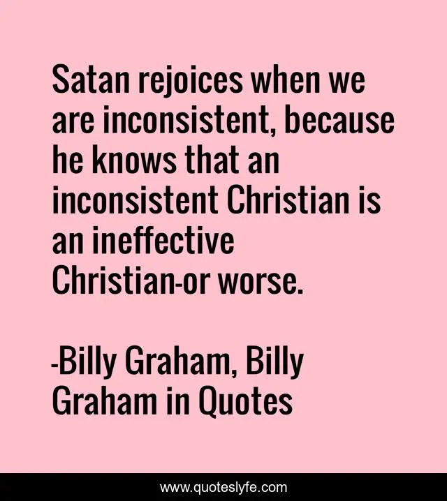 "Billy Graham, Billy Graham in Quotes Quotes." Quoteslyfe.com, 2025. Sat. 06 Dec. 2025. <https://www.quoteslyfe.com/quote/Satan-rejoices-when-we-are-inconsistent-because-152548>.