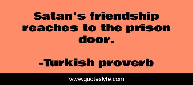 This page presents the quote "Satan's friendship reaches to the prison door.". Author of this quote is Turkish proverb. .
