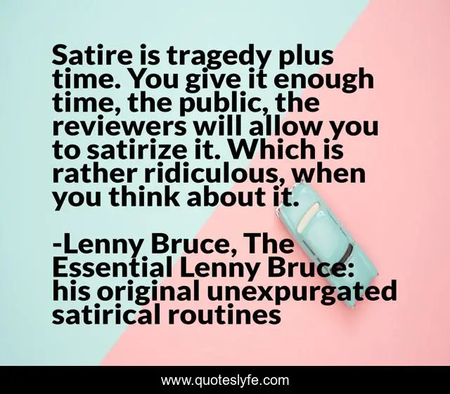 "Lenny Bruce, The Essential Lenny Bruce: his original unexpurgated satirical routines Quotes." Quoteslyfe.com, 2025. Fri. 05 Dec. 2025. <https://www.quoteslyfe.com/quote/Satire-is-tragedy-plus-time-You-give-38502>.