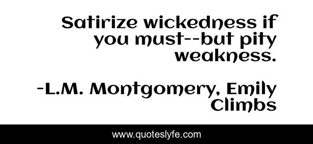This page presents the quote "Satirize wickedness if you must--but pity weakness.". Author of this quote is L.M. Montgomery, Emily Climbs. This quote is about pity, mercy, satire, weakness,.